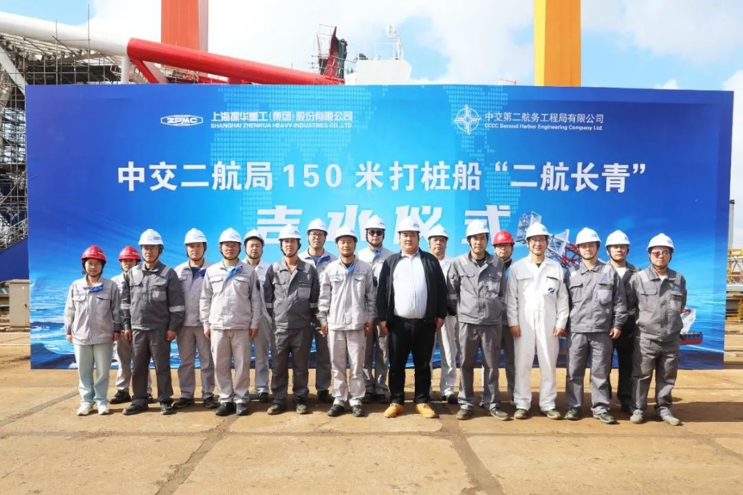 11月11日,上海振華重工為中交二航局建造的150米打樁船“二航長(zhǎng)青”輪在振華海工舉行吉水儀式。